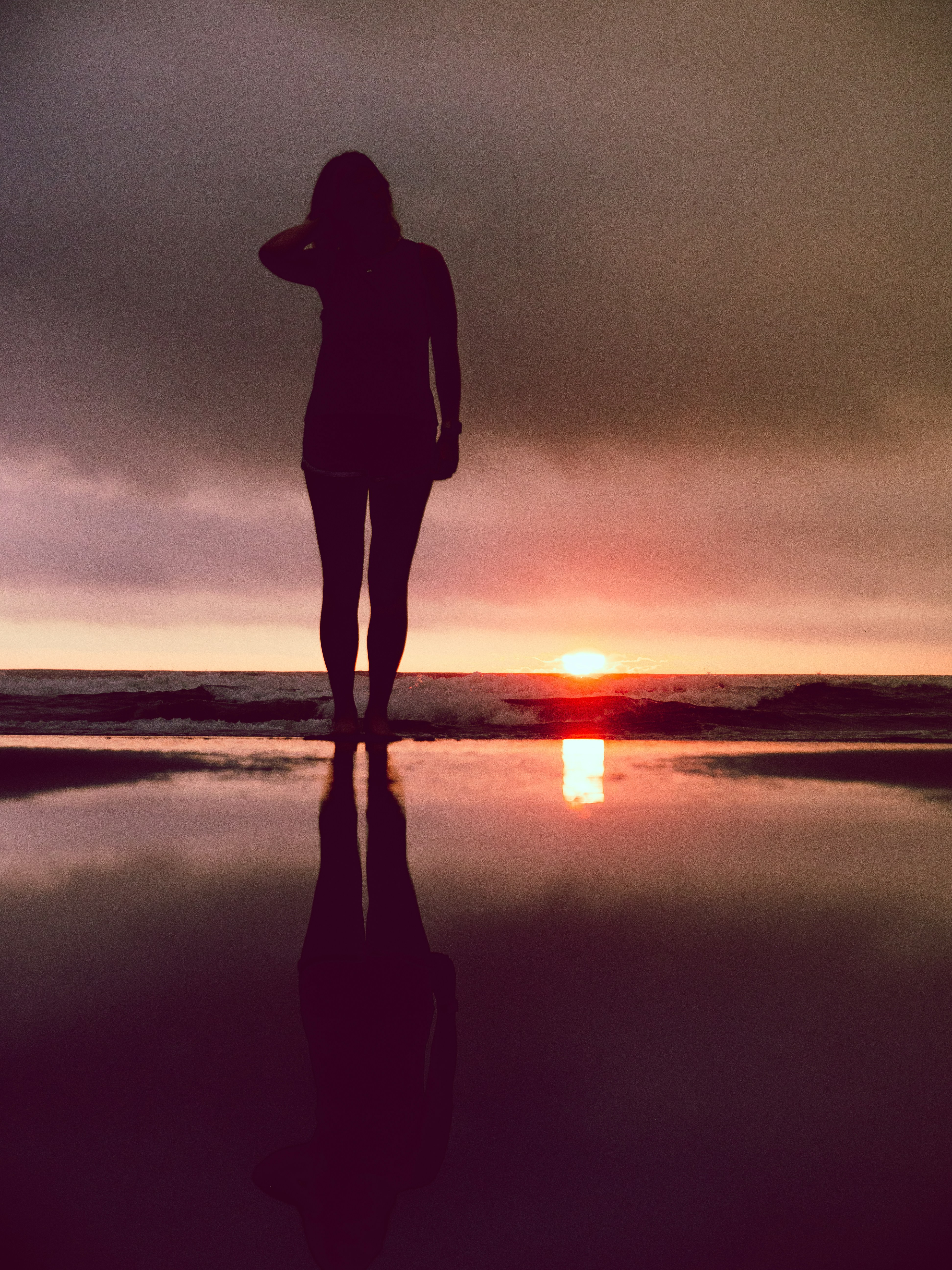 Silhouette Of Man Standing On Sea During Sunset Photo Free Outdoors Image On Unsplash